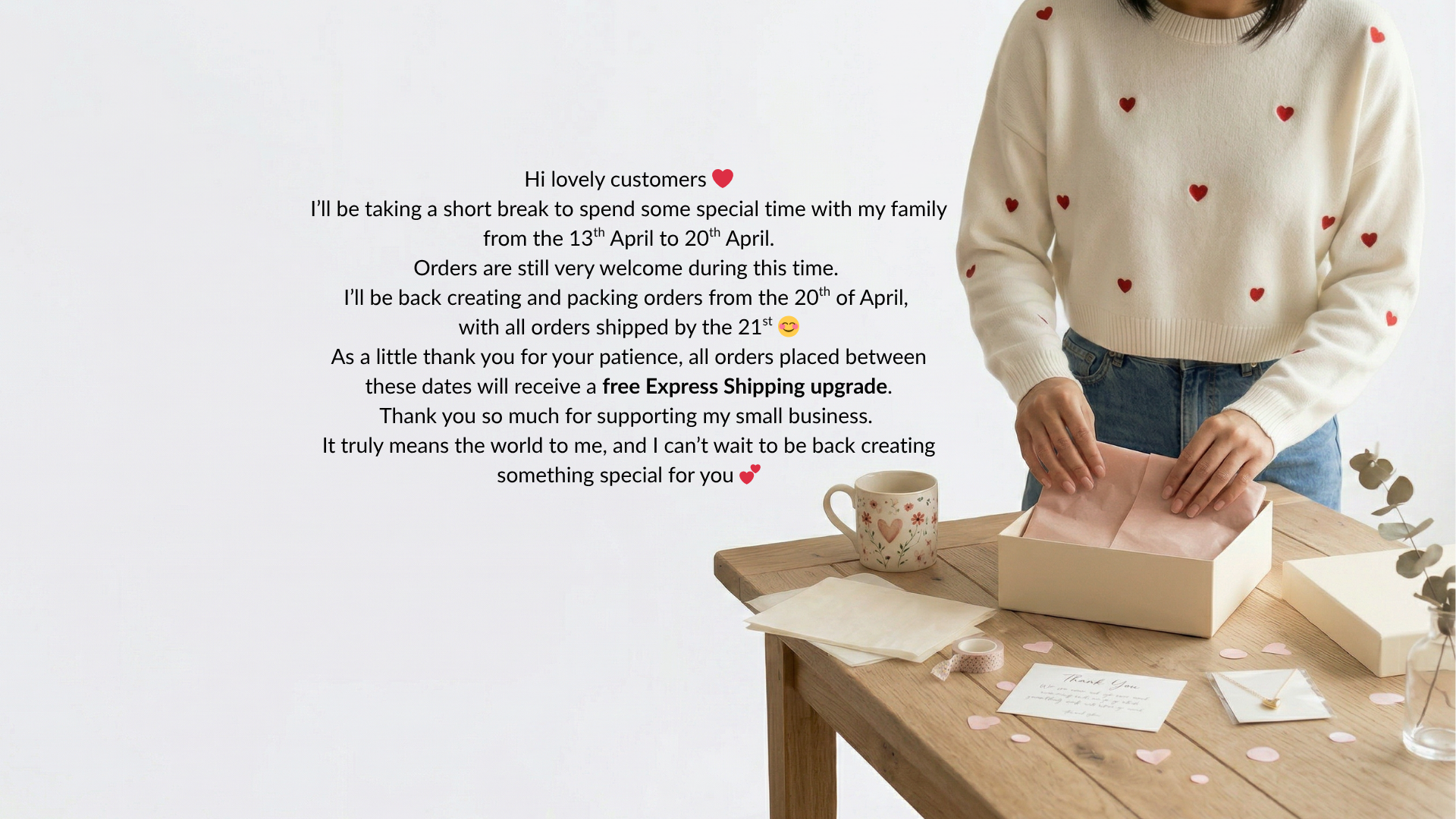 Love the cute customised mug. Excellent customer service. Fast delivery and appreciated the little freebies :) Thankyou